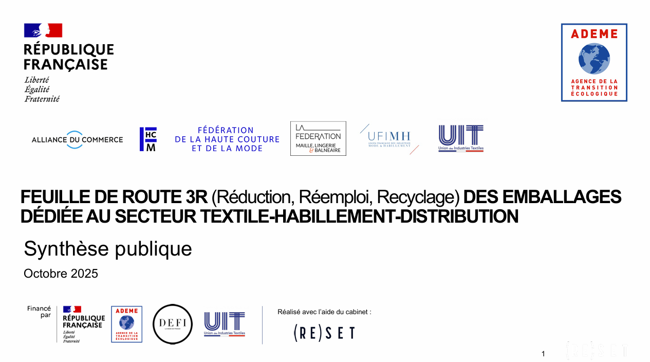 Cette feuille de route a été initiée par l’Alliance du Commerce, la Fédération de la Haute Couture et de la Mode (FHCM), la Fédération de la Maille, de la Lingerie et du Balnéaire, l’Union Française des Industries Mode et Habillement (UFIMH) et l’Union des Industries Textiles (UIT), avec le soutien de l’ADEME, l’UIT et du DEFI, et réalisée avec l’appui du cabinet (RE)SET. Elle représente une collaboration entre 5 acteurs majeurs du secteur, réunissant plus de 1 000 adhérents.