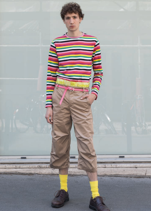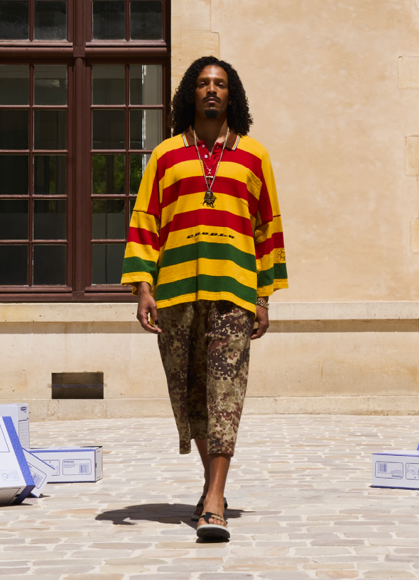 Rémy Guerra est diplômé de la Gerrit Rietveld Academie d’Amsterdam, où il suit un cursus orienté vers la vidéo et l’installation tout en apprenant la couture de manière autodidacte. En 2024, il fonde GARDOUCH, cadre dans lequel il transforme ses archives personnelles en silhouettes et interroge ce que le passé devient une fois porté. Originaire de Gardouch, un village du Sud-Ouest qui donne son nom à sa marque, Rémy Guerra développe un travail fondé sur une idée centrale : la mémoire disparaît si l’on cesse de la retenir. Chaque collection mêle artisanat naïf, anachronismes et matières issues de stock dormant, pour un vestiaire pensé pour les corps et non les genres.
