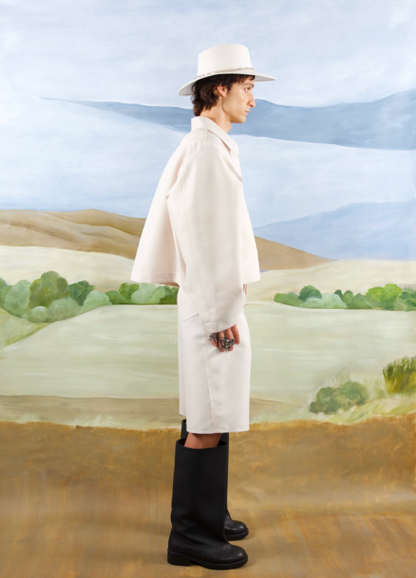 Finalistes du 39e Festival International de la Mode d’Hyères en octobre 2024, Victor Koehler et Victoria Baia ont fondé LA CAGE lorsqu’ils étaient encore étudiants à l’école Duperré. En 2023, ils décident de commercialiser leurs créations. Inspirés par le cinéma des années 90, les créateurs revisitent les codes traditionnels du vêtement, notamment des uniformes de parade et cérémonie, pour créer un vestiaire engagé. Fabriquées en France, les pièces de LA CAGE sont le fruit d’un savoir-faire artisanal et fait-main, en parfaite adéquation avec leur démarche.