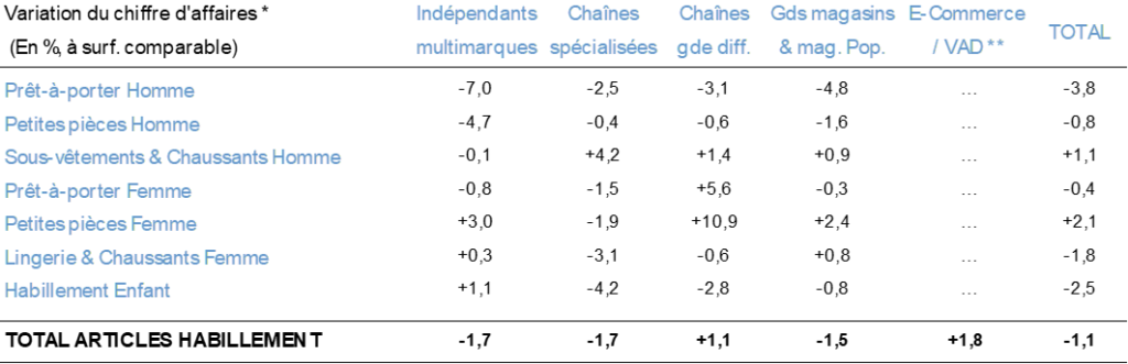 * Y compris ventes en ligne. Les résultats des hypers-supermarchés sont inclus dans le total.